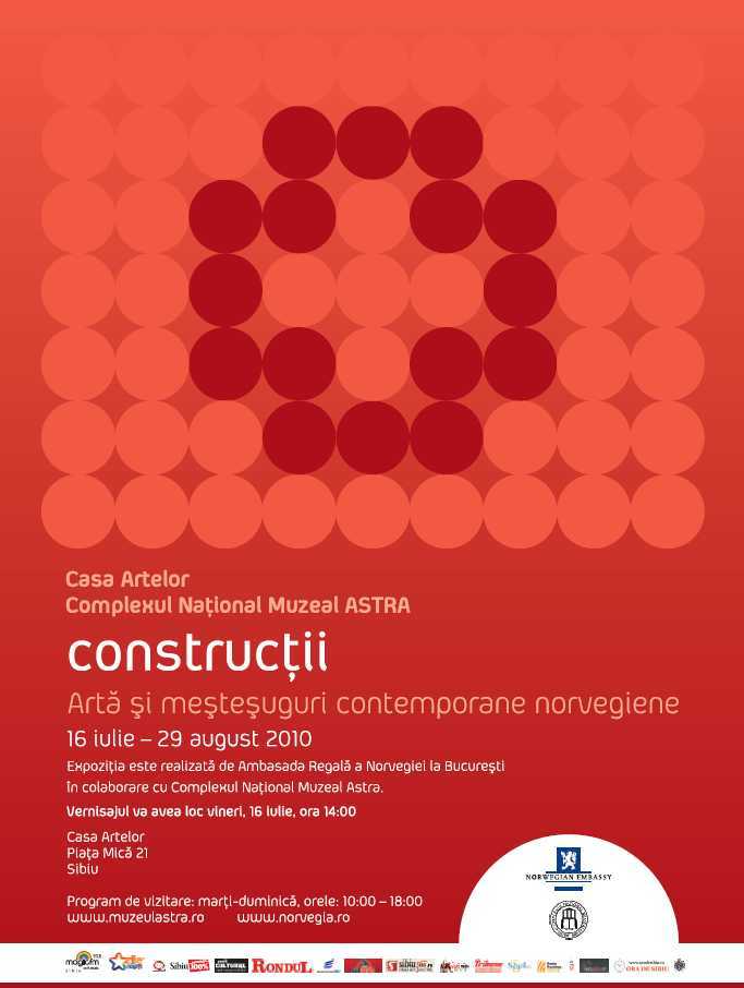 Vineri, 16 iulie 2010, ora 14:00, la Casa Artelor (Piaţa Mică 21, Sibiu) are loc vernisajul expoziţiei de artă şi meşteşuguri contemporane norvegiene, „Construcţii”.