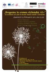 Duminică, 13 februarie 2011, ora 15:00, la Clubul Țăranului din cadrul Muzeului Țăranului Român (Şoseaua Kiseleff 3, Bucureşti), va fi prezentat proiectul “Dragostea în vremea războiului. 65+”, un eveniment care pune în discuție situația actuală a vârstnicilor.  Acesta conţine secțiuni precum „biblioteca vie, demonstraţii de vals şi can-can, proiecţii de colaje filmate în perioada comunistă şi interbelică. “Dragostea în vremea războiului. 65+” face parte din proiectul „Artist și manager cultural la 16 ani”, produs de Fundația Rațiu România, voluntari și liceeni din sectorul 4 Bucureşti. Proiectul urmărește formarea unor tineri pentru a deveni viitori profesionişti performanţi, adaptabili, activi şi creativi.