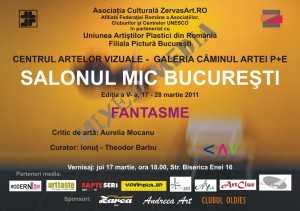 Joi, 17 martie 2011, ora 18:00, la Galeria Căminul Artei (str. Biseria Enei nr. 16, Bucureşti), va avea loc vernisajul “Salonului Mic Bucureşti (SMB)”, ediţia a V-a, intitulată “Fantasme”. Curator: Ionuţ Theodor Barbu. Va prezenta criticul de artă Aurelia Mocanu. Expoziţia va putea fi vizitatǎ în perioada 17 martie – 28 martie 2011. Evenimentul este organizat de Uniunea Artiştilor Plastici din România-Filiala Pictură şi Asociaţia Culturală Zervas Ro.