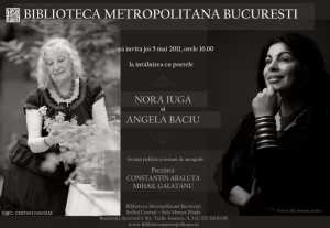Joi, 5 mai 2011, ora 16:00, la Biblioteca Metropolitană Bucureşti (Str. Tache Ionescu nr. 4), va avea loc o lectură publică susţinută de Nora Iuga şi Angela Baciu, urmată de o sesiune de autografe. Evenimentul va fi prezentat de Constantin Abăluţă şi de Mihail Gălăţanu.