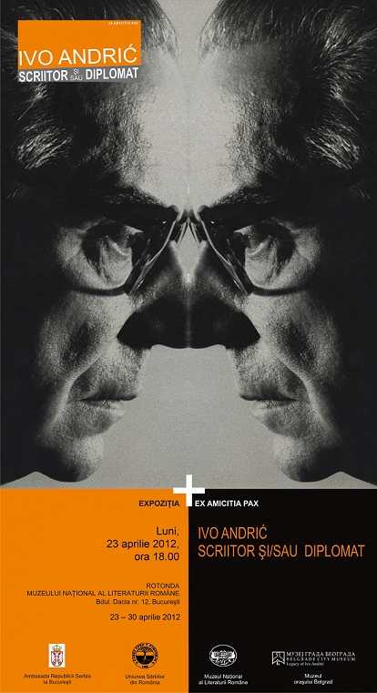 Luni, 23 aprilie 2012, de la ora 18.00, în Rotonda Muzeului Naţional al Literaturii Române (Bdul. Dacia nr. 12), va avea loc vernisajul expoziţiei de fotografii Ivo Andrić – Scriitor/Diplomat, realizată de Muzeului oraşului Belgrad. Amfitrion: Lucian Chişu.