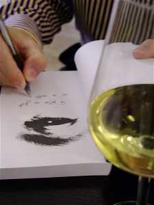 Autorul a citit, la un pahar de vin, şi câteva texte inedite, din volumul cinci, pe care îl are în lucru.