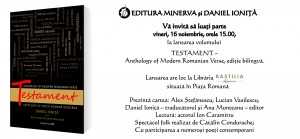 Vineri, 16 noiembrie 2012, ora 15,00, la librăria „Bastilia”(Piaţa Romană nr. 5, Bucureşti) va avea loc lansarea volumului “Antologie de poezie română modernă”, ediţie bilingvă (română-engleză), Editura Minerva, care are loc în prezenţa iniţiatorului şi principalului traducător al acestei cărţi, prof. Daniel Ioniţă, de la Universitatea din Sydney. Volumul va fi prezentat de Alex. Ştefănescu, Lucian Vasilescu, Daniel Ioniţă, Ana Munteanu. De asemenea, va avea loc un spectacol folk realizat de Cătălin Condurache.