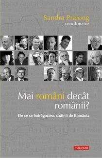 Joi, 20 iunie 2013, ora 18.00, la Librăria Humanitas de la Cişmigiu (Bucureşti), va avea loc lansarea volumului “Mai români decît românii? De ce se îndrăgostesc străinii de România”, coordonat de Sandra Pralong, Editura Polirom. Vor vorbi, alături de coordonatoare: Raed Arafat (SMURD), Steven van Groningen (Raiffeisen Bank România), Jakob Hausmann (proprietarul şi bucătarul şef al restaurantului Mica Elveţie din Bucureşti), Yuexia Lushi Liu (Doctor, Medicina Chineză), Serge Gonvers (Audiconsult), Alessandro Amato (Gucci, Celini), Peter Hurley (Fondator Festivalul de la Săpînţa), Jean Valvis (Aqua Carpatica), Paulin Frank Nucea (Artist), Robbert Peter Oostveen (Oostveen Consulting Expert), Leslie Hawke (OvidiuRo – Fiecare Copil în Grădiniţă), Roberto Musneci (ex-CEO Glaxo, acum Şerban&Musneci Associates), Joaquin Bonilla (Wunderman România), Sapta Sheel (Expert în Management), Don Lothrop (Investitor), Wajiha Haris (preşedinte fondator al Fundaţiei Scheherazade), Irina Budrina (Expert Comunicare Inteculturală), Nicolas Triboi (Atelierul de peisagistică „Foaie Verde”), Sandra Gătejeanu-Gheorghe (Şef de Protocol, Casa Regala a României). Moderator: Alison Mutler (Associated Press Bureau-chief).