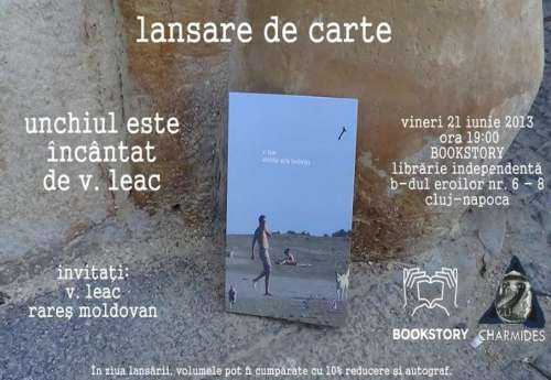 Vineri, 21 iunie 2013, ora 19:00, la Bookstory (B-dul Eroilor 6-8, Cluj), va avea loc lansarea volumului “Unchiul este încântat” de V. Leac, Editura Charmides. Invitaţi: V. Leac, Rareş Moldovan.