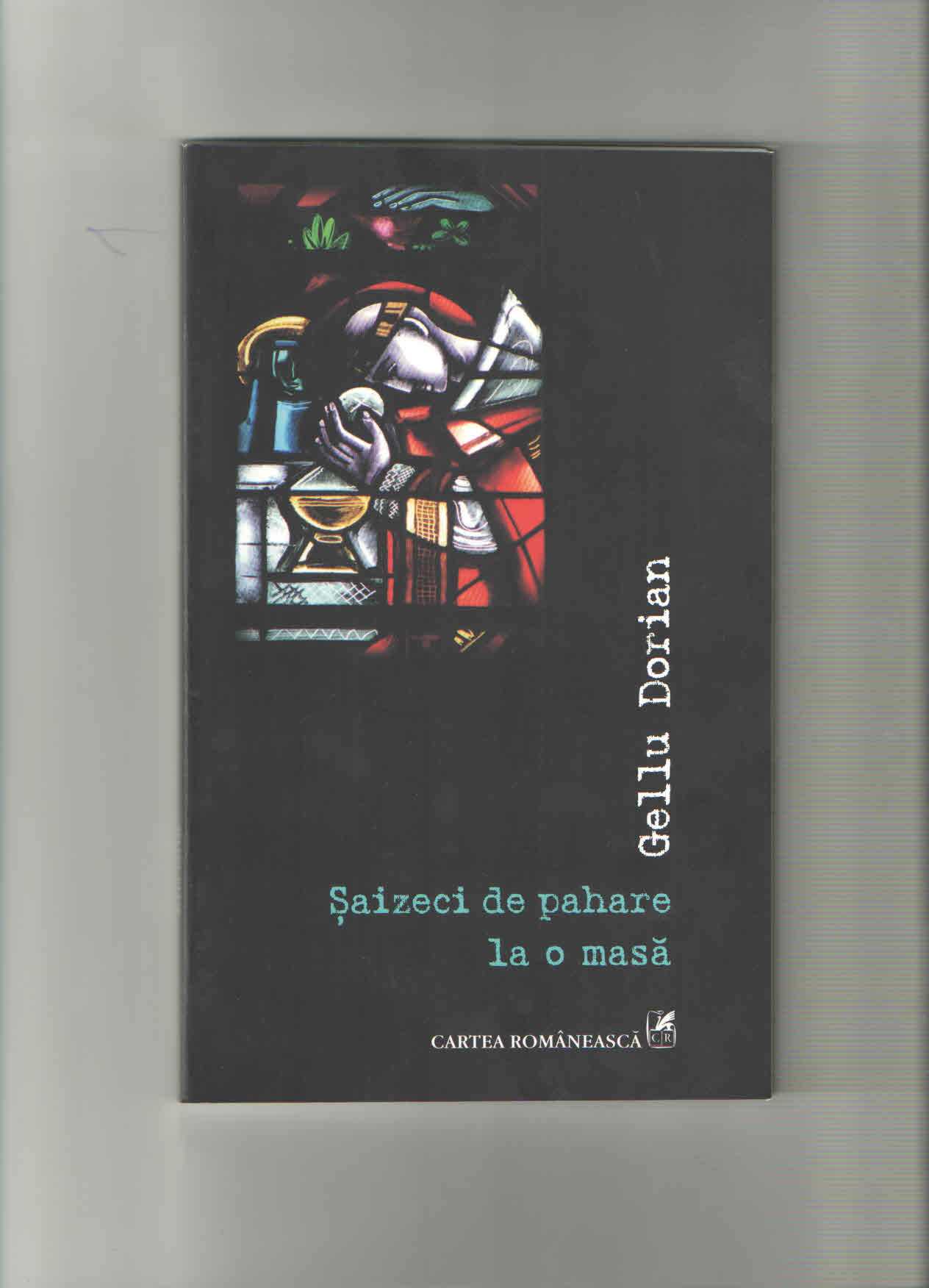 „Cartea aceasta s-a adunat în timp, aşa cum s-au adunat anii de până acum; nici nu ştiu cum. Am dorit dintotdeauna să spun ceea ce trebuie spus despre o perioadă care ne-a modificat în rău existenţa. În bună parte asta fac în Şaizeci de pahare la o masă. Celor cărora le datoram o astfel de destăinuire, părinţii mei, nu mai sunt. Amintirii lor le dedic cartea. Revolta vărsată în paharele bucuriei naşterii, ale amărăciunii vieţii furate, ale disperărilor, ale iubirilor neîmplinite, ale singurătăţilor, ale morţii care trăieşte tot timpul în vizuina existenţei tale este dezvăluită calm la masa aşternută pentru trecerea vieţii. Cine doreşte se poate aşeza şi bea dimpreună cu poetul licorile din paharele pline, revărsând.” (Gellu Dorian)