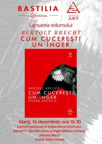 Marţi, 16 decembrie 2014, ora 18:30, la Bastilia Librarium (Piața Romană nr.5, București), va avea loc lansarea volumului ”Cum să cucereşti un înger, poeme erotice”, de Bertolt Brecht. Lectură-spectacol cu traducătorul volumului, Gabriel H. Decuble (voce) şi Angel Militaru (chitară). Invitat: Matei Martin. Intrarea liberă.