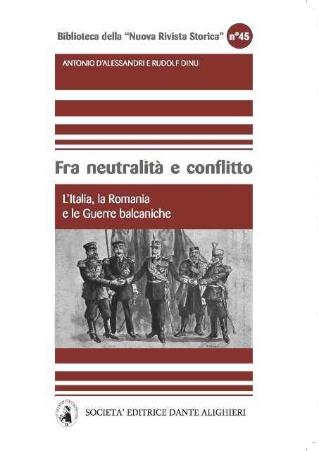 Joi, 22 ianuarie 2015, ora 16.30, Institutul Român de Cultură şi Cercetare Umanistică de la Veneţia, în colaborare cu Universitatea din Padova şi cu Universitatea Roma Tre, sub patronajul Asociaţiei italiene de Studii Sud-Est europene (AISSEE), vă invită la lansarea volumului Fra neutralità e conflitto. L’Italia, la Romania e le Guerre Balcaniche – Între neutralitate şi conflict. Italia, România şi Războaiele Balcanice, îngrijit de Antonio D’Alessandri şi Rudolf Dinu şi publicat la editura Asociaţiei Dante Alighieri, în cadrul seriei de monografii “Biblioteca della Nuova Rivista Storica”.
