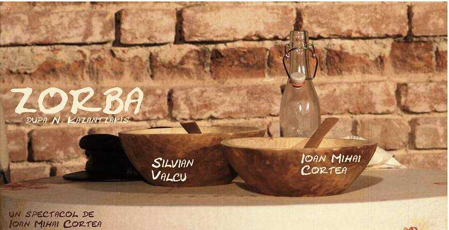 Sâmbătă, 7 februarie 2015, ora 20.00, Teatrul de Sufragerie (Str. Grigore Cobălcescu nr. 51, sector 1) prezintă spectacolul ”Zorba”, adaptare dupa N. Kazantzakis. Un spectacol de Ioan Mihai Cortea. Cu Mihai Ioan Cortea și Silvian Vâlcu.