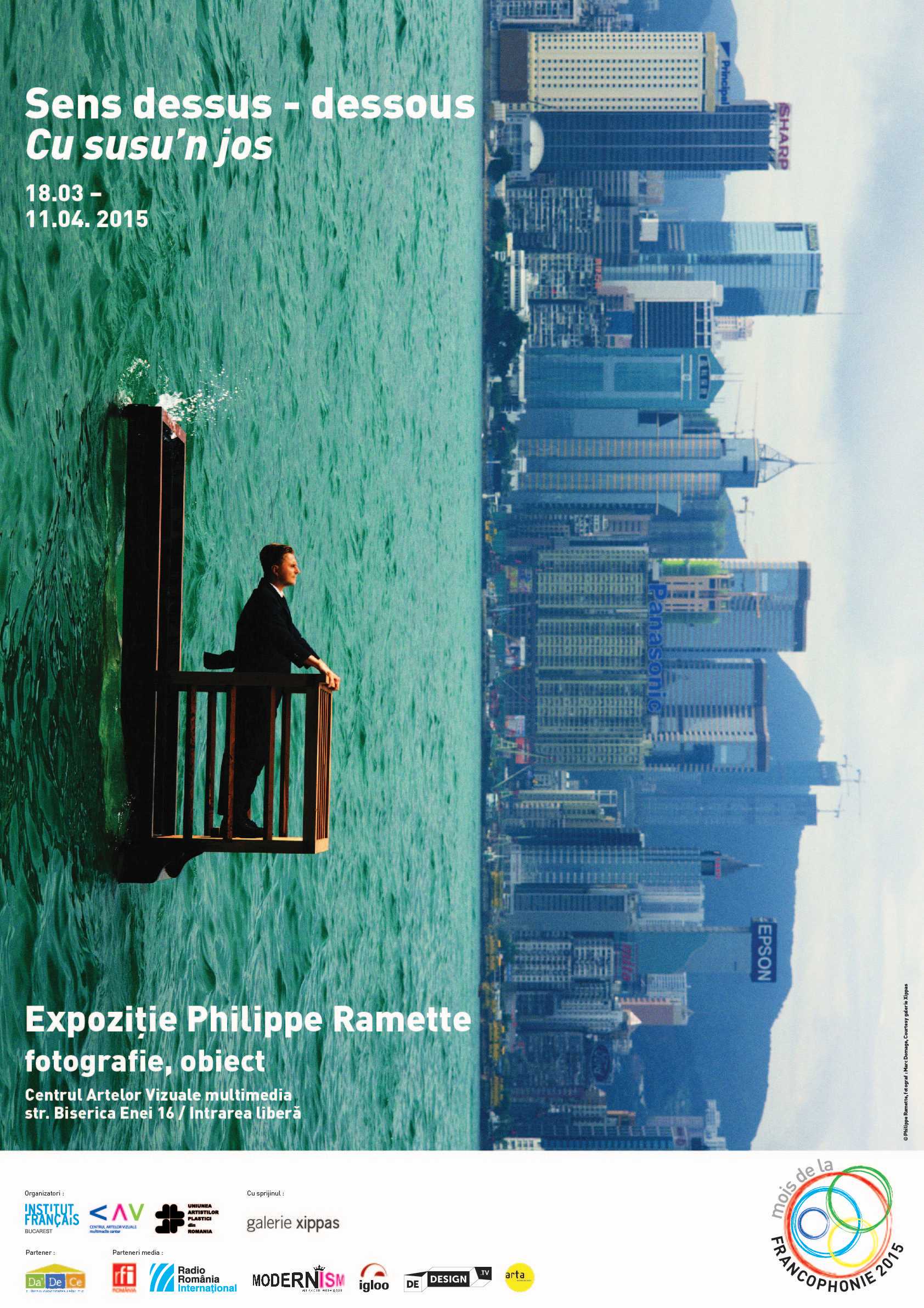 Miercuri, 18 martie 2015, ora 19.00, la  Galeria Centrul Artelor Vizuale-Multimedia (București, Str. Biserica Enei, nr 16), va avea loc vernisajul expoziției „Cu susu-n jos”, în prezența lui Philippe Ramette. Expoziția va putea fi vizitată în perioada 18 martie – 11 aprilie 2014.