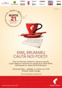 Cadrul întâlnirii este unul special pentru că va fi înconjurat de „cafea plătită cu poezie”. Julius Meinl România va oferi cafea în schimbul poeziei pe tot parcursul evenimentului, iar la sfârșit, Emil Brumaru va alege cea mai frumoasă poezie de pe șervețelele înscrise pentru a fi premiată cu un espressor pe capsule marca Julius Meinl. Reprezentanții Julius Meinl România vor prezenta cele mai noi proiecte ale companiei, precum și această inițiativă globală simultană de Ziua Poeziei, când se plătește cafeaua cu poezie, oriunde se găsește acest brand.