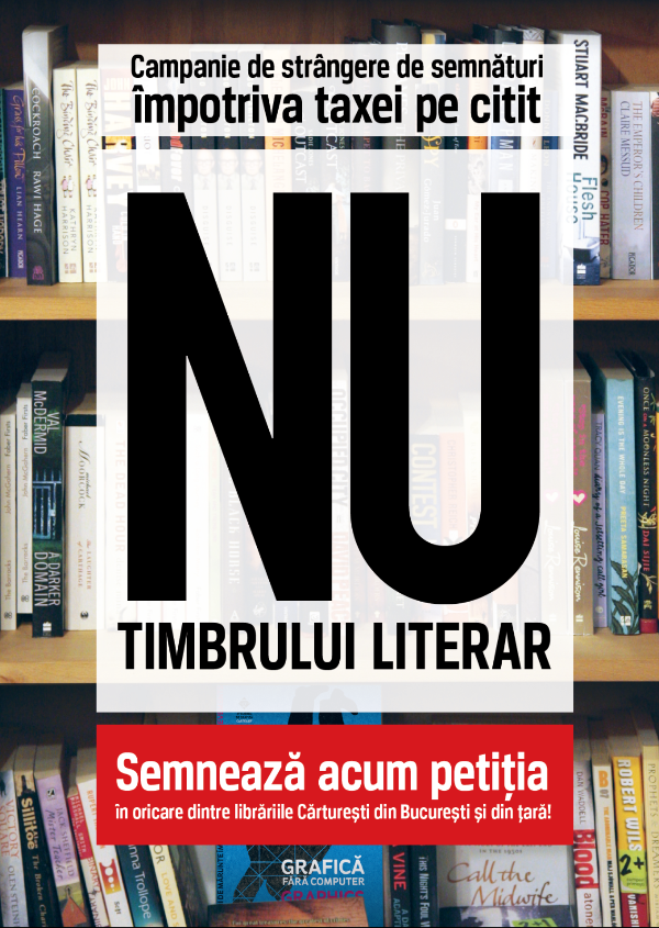 Cărturești susține campania de strângere de semnături împotriva timbrului literar prevăzut de legea 35/1994: cititorii pot semna petiția în oricare dintre librăriile din lanț. Găsiți aici mai multe detalii despre petiția împotriva taxei pe citit.