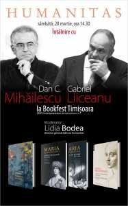 Sâmbătă, 28 martie 2015, de la ora 14.30, Gabriel Liiceanu şi Dan C. Mihăilescu îşi dau întâlnire cu cititorii timişoreni, la Salonul de Carte Bookfest, care are loc la Centrului Regional de Afaceri Timișoara.