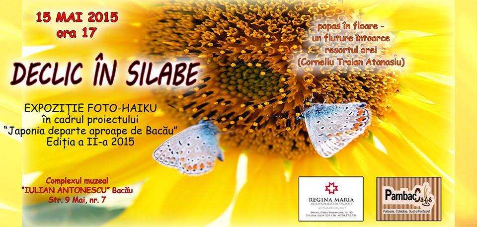 Vineri, 15 mai 2015, ora 17.00, la sediul Complexului Muzeal “Iulian Antonescu” ( Str. 9 Mai, nr. 7, Bacău) vor avea loc vernisarea expoziţiei „Declic în silabe” şi lansarea volumului de haiku “Femeia bonsai” al autoarei Mihaela Băbuşanu, evenimente ce au loc în cadrul proiectului “Japonia departe-aproape de Bacău”, ediţia a II-a.
