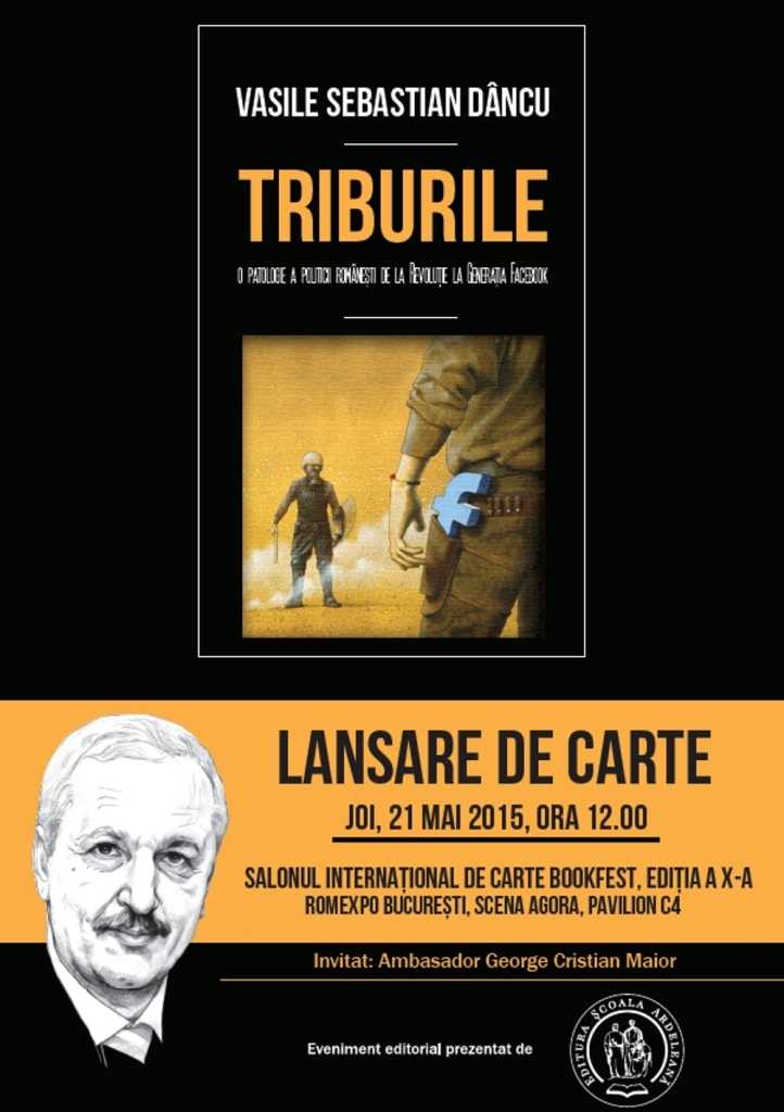 Joi, 21 mai 2015, începând cu ora 12.00, în cadrul Salonului Internaţional de Carte Bookfest, ediția a X-a, Romexpo Bucureşti ( Scena Agora, Pavilion C4), va avea loc lansarea volumului „Triburile. O patologie a politicii româneşti de la Revoluţie la Generaţia Facebook” de Vasile Sebastian Dâncu, apărut la Editura Şcoala Ardeleană din Cluj-Napoca. Volumul va fi lansat în prezenţa autorului. Invitat: Ambasador George Cristian Maior.