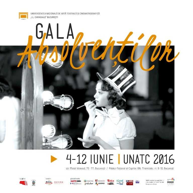 În perioada 4-12 iunie, Universitatea Naţională de Artă Teatrală şi Cinematografică „I.L. Caragiale” Bucureşti vă invită la o nouă ediție a Galei Absolvenților dedicată promoțiilor 2016 de la Facultatea de Teatru și Facultatea de Film. Anul acesta, UNATC sărbătorește într-un timp comprimat evoluția și realizările studenților atât de la teatru, cât și de la film, prin urmare sunteți așteptați la spectacole, expoziții de costume, lansări de carte și proiecții de film. AgențiadeCarte.ro este partener media al evenimentului.