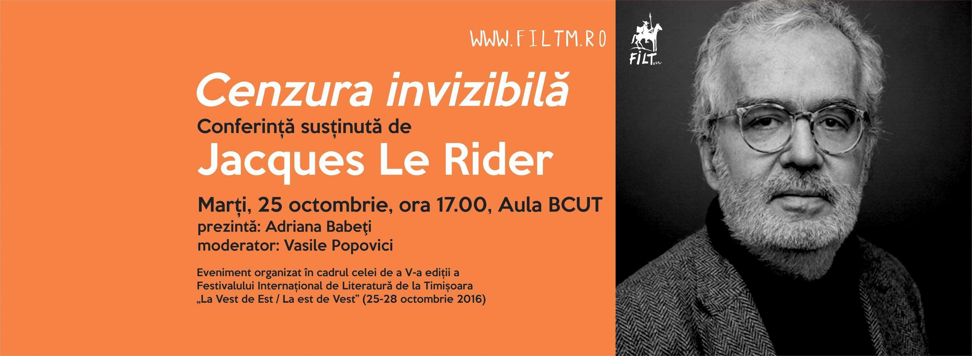 CONFERINȚĂ susținută de Jacques Le Rider – „Cenzura invizibilă”