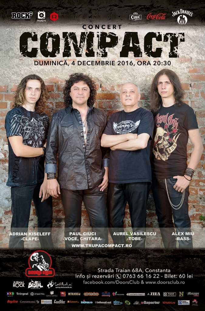 Duminică, 4 decembrie 2016, ora 20:30, Doors Club din Constanța vă propune întâlnirea cu o legendă a muzicii rock din România – trupa COMPACT.