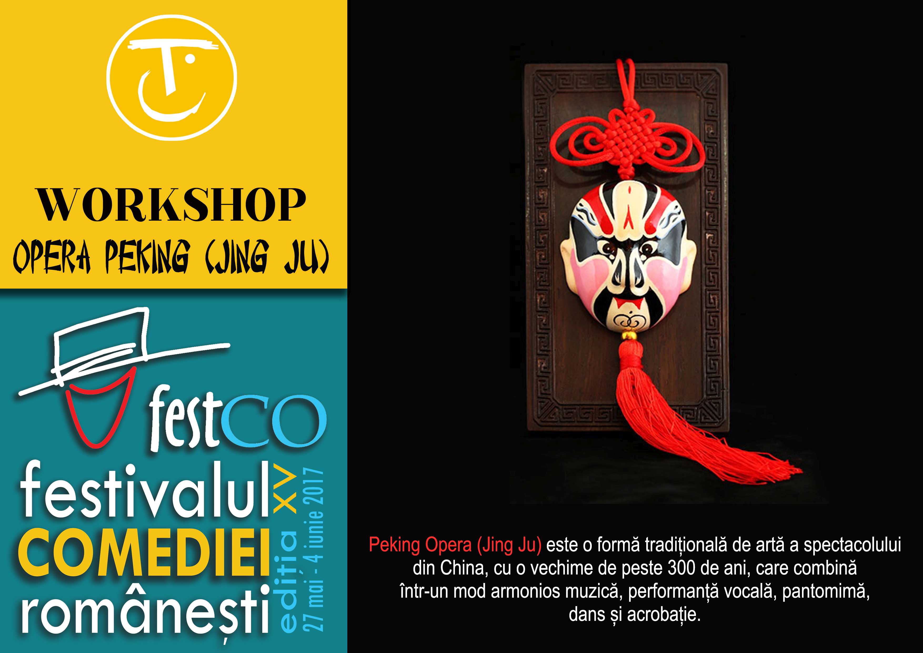 Compania de teatru Star Theatre Beijing vă așteaptă – pentru prima dată în România – la un workshop dedicat tradiționalei arte a spectacolului Jing Ju
