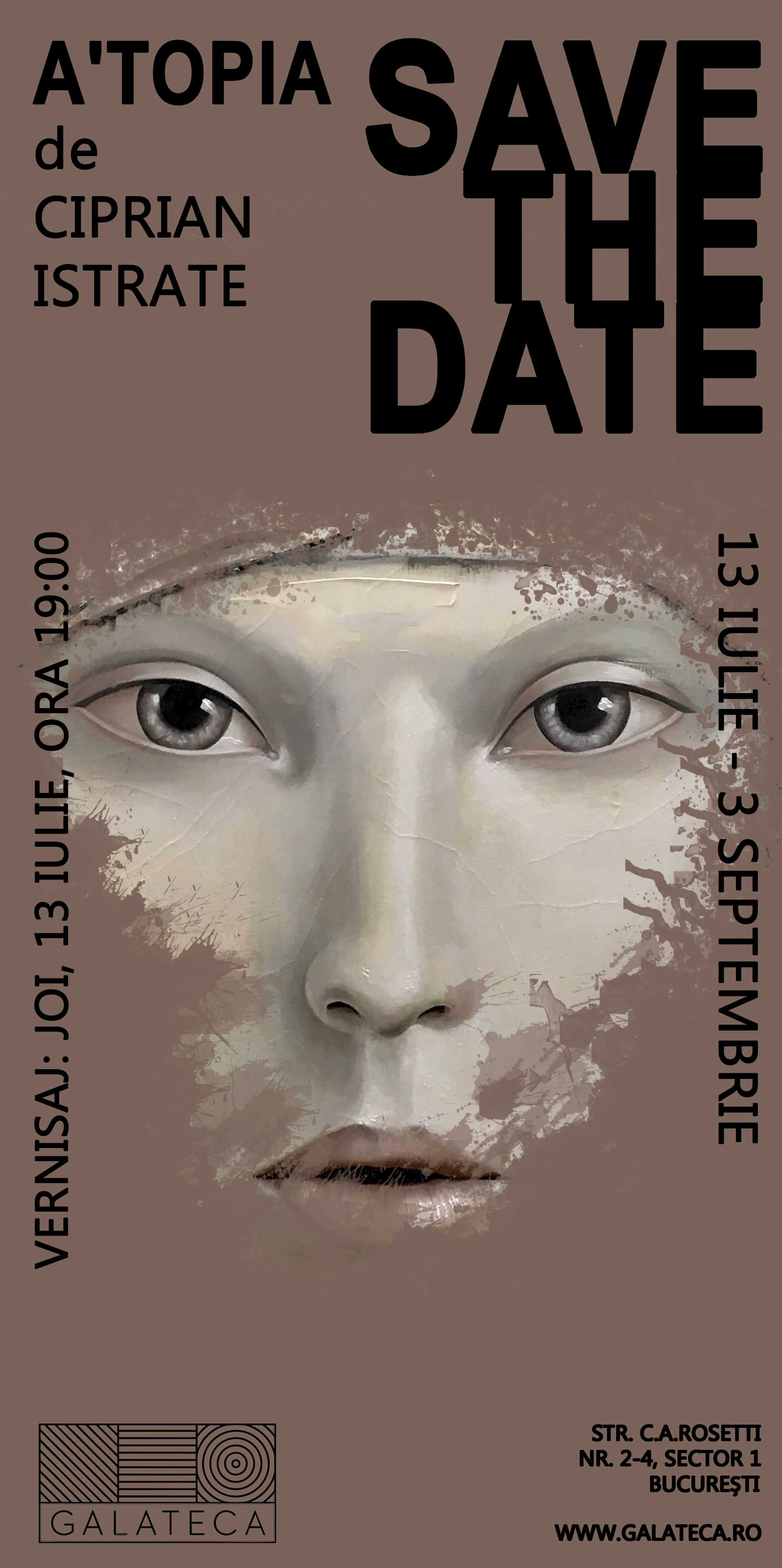 Joi, 13 iulie 2017, ora 19:00, Galeria Galateca vă propune o intâlnire cu artistul vizual Ciprian Istrate și cel mai nou proiect al său A’TOPIA, un discurs plastic despre căutare, explorare, reflectare, regăsire și împăcare. Expoziția poate fi vizitată în perioada 13 iulie – 3 septembrie 2017. Curator: Iulia Gorneanu.