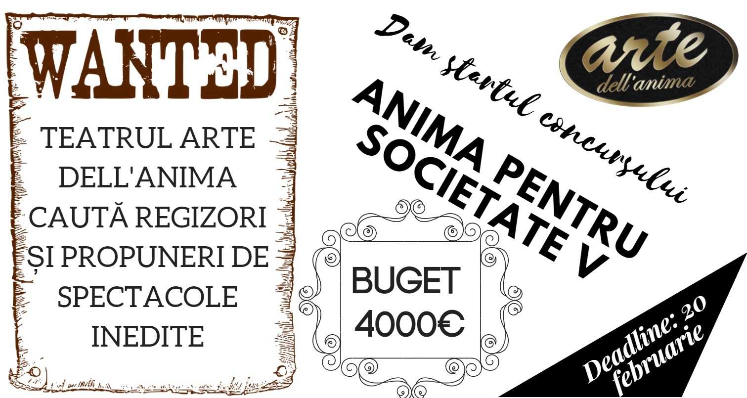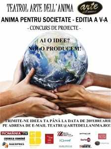 Teatrul Arte dell’ Anima anunță cea de-a V-a ediție a concursului de proiecte ”Anima pentru societate 5”.
