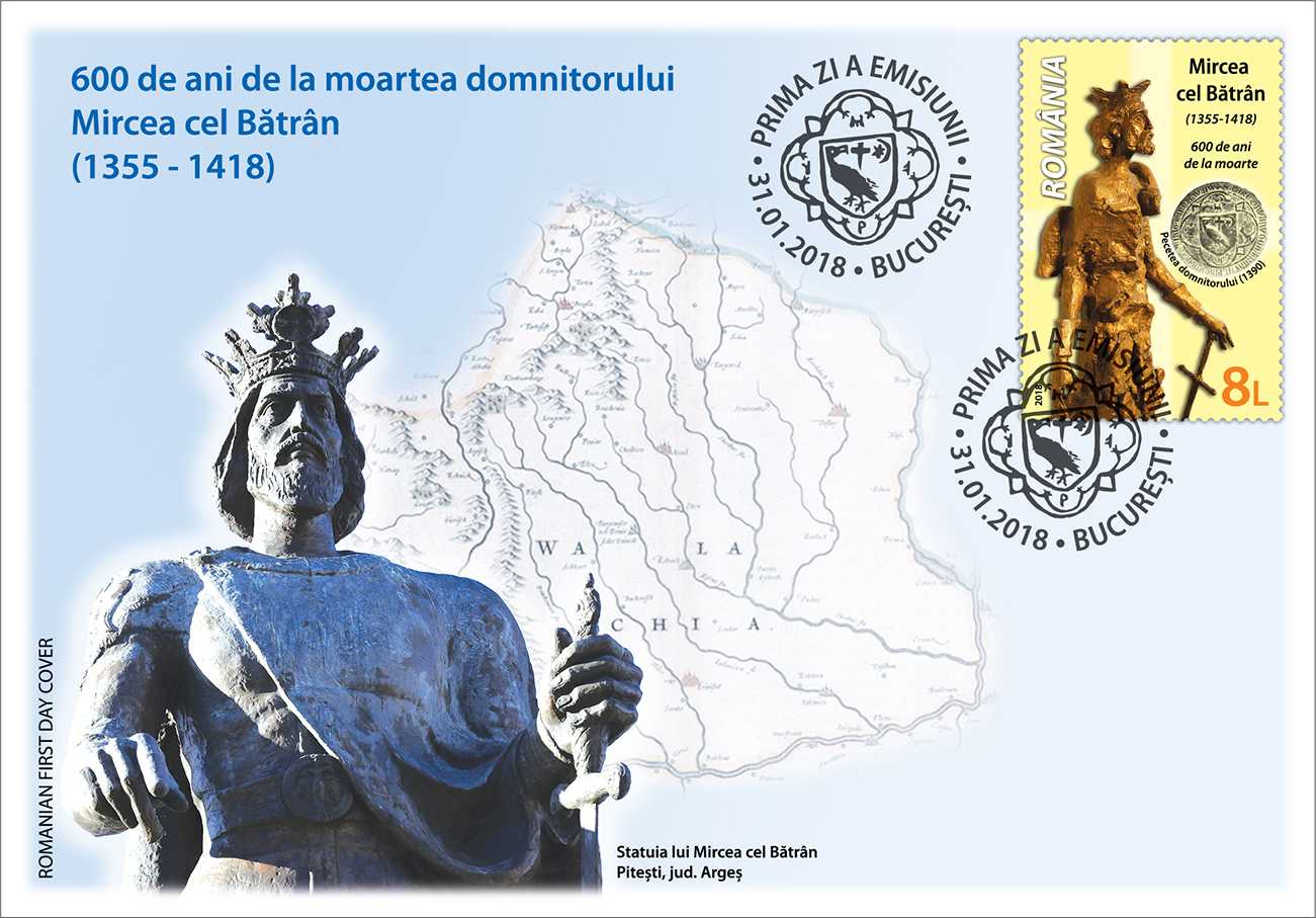 Mircea cel Bătrân, o figură emblematică a Evului Mediu românesc, a fost voievodul în timpul căruia Valahia a atins apogeul puterii sale politice și a întinderii teritoriale. Mircea nu a fost doar domn al Țării Românești, ci și senior al unor importante ținuturi transilvane și singurul stăpânitor al ținuturilor românești de la Marea Neagră. Romfilatelia îl omagiază pe marele voievod al Ţării Româneşti, introducând în circulaţie emisiunea de mărci poștale Mircea cel Bătrân, 600 de ani de la moarte. Noua emisiune va fi disponibilă începând de miercuri, 31 ianuarie 2018, în magazinele Romfilatelia din Bucureşti, Bacău, Braşov, Cluj-Napoca, Iaşi, Timişoara, precum şi în magazinul online: http://romfilatelia.ro/store/.