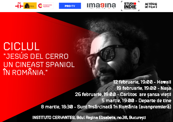 Ambasada Spaniei şi Instituto Cervantes din Bucureşti vă invită la evenimentul cinematografic „Jesús del Cerro, un cineast spaniol în România”, care se va desfăşura în perioada 12 februarie – 8 martie 2018, la Instituto Cervantes. Evenimentul îl aduce în prim plan pe regizorul si producatorul spaniol Jesús del Cerro şi va cuprinde o selecţie de cinci filme care îmbină diverse genuri pentru toate vârstele şi gusturile. Din program nu vor lipsi acţiunea, drama sau romantismul pe care le vom regăsi în „Hawaii”, cel mai recent film al lui Jesús del Cerro. Proiecţia va fi urmatã de o sesiune de întrebări şi răspunsuri în prezenţa regizorului, moderatã de actriţa Cristina Flutur care interpreteazã rolul principal feminin în acest film (câștigãtoarea Premiului Palme d’Or pentru Interpretare Feminină la Festivalul de Film de la Cannes pentru rolul Alina din filmul „După dealuri” de Cristian Mungiu).