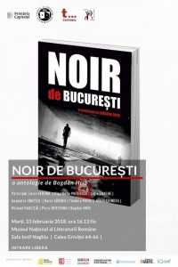 Marți, 13 februarie 2018, ora 16:13 fix, în Sala Iosif Naghiu, Calea Griviței 64-66.Muzeul Național al Literaturii Române, Editura Tritonic și Teatrul Dramaturgilor Români prezintă ”NOIR de București”, o antologie de Bogdan Hrib. Participă: Lucia Verona, Olga Delia Mateescu, Ligia Enache, Anamaria Ionescu, Horia Gârbea, Teodora Matei, Silvia Chindea, Michael Haulică, Petru Berteanu, Bogdan Hrib. AgențiadeCarte.ro este partener media al evenimentului.