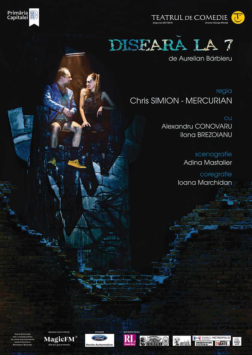 Miercuri, 21 februarie 2018, ora 19.30, la Sala Studio, Teatrul de Comedie prezintă premiera oficială a spectacolului ”Diseară la 7” de Aurelian Bărbieru, în regia lui Chris Simion-Mercurian, cu Ilona Brezoianu și Alexandru Conovaru. Scenografia este semnată de Adina Mastalier, iar coregrafia îi aparține Ioanei Marchidan. Spectacolul este rezultatul ediției a XII-a (2017) a Concursului de Comedie Românească, organizat încă din 2006 de către Teatrul de Comedie, în cadrul căruia piesa într-un act ”Diseară la 7” de Aurelian Bărbieru a fost distinsă cu Premiul I.