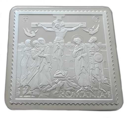 Produsul special, cu timbru de argint, reunește, într-o prezentare originală, un bloc special de 3 timbre dantelate (conţinând seria emisiunii, alături de timbrul din coliţa emisiunii), realizat în tiraj limitat de 421 exemplare și numerotat, precum și replica modelată în argint a mărcii poștale care ilustrează icoana Răstignirea Domnului Iisus Hristos, împreună cu Certificatul de Autenticitate eliberat de Monetăria Statului, înseriat de la 001 la 421.