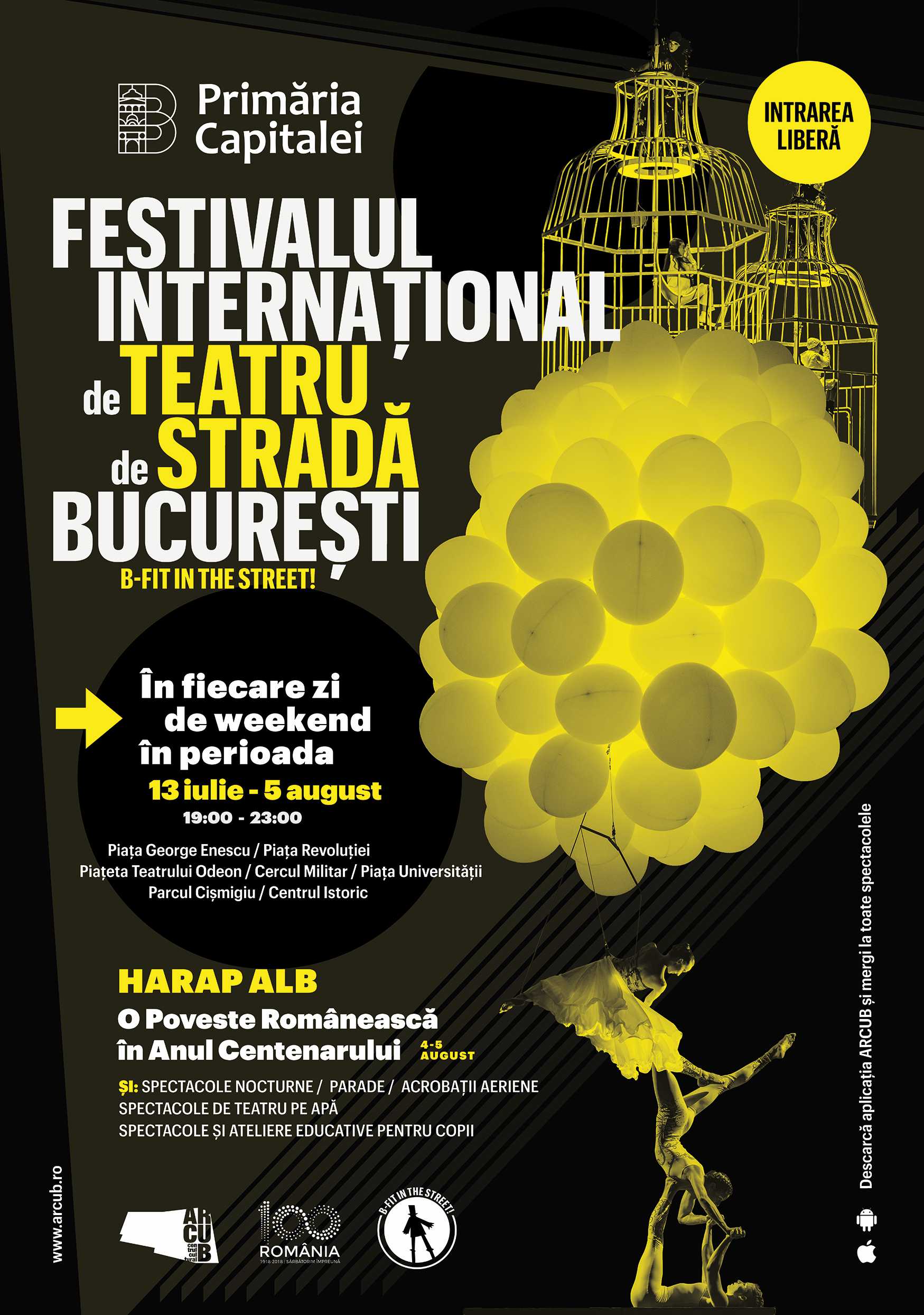 În perioada 13 iulie – 5 august 2018, Primăria Capitalei prin ARCUB organizează Festivalul Internațional de Teatru de Stradă București B-FIT in the Street!  După un prim weekend de spectacole cu un număr record de participanți, Festivalul Internațional de Teatru de Stradă București B-FIT in the Street! continuă cu noi producții internaționale programate în perioada 21-22 iulie, în puncte centrale din oraș. Zeci de mii de bucureșteni și turiști au participat în weekendul 13-15 iulie la spectacolele care au marcat deschiderea celei de-a zecea ediții a Festivalului Internațional de Teatru de Stradă București B-FIT in the Street!. Atmosfera festivă a atins un moment de vârf sâmbătă seara, odată cu premiera mondială a spectacolului de acrobație aeriană Sonics in Wish  (Italia) din Piața George Enescu, urmată de prima paradă a festivalului din acest an pe Calea Victoriei și Bulevardul Regina Elisabeta. Parcul Cișmigiu a devenit neîncăpător la unica reprezentație din festival a spectacolului pe apă Water Fools (Franța), de sâmbătă, 14 iulie, iar Piața Universității a fost cel mai vizitat punct al festivalului cu reprezentații zilnice de circ, dansuri de cabaret, muzică live la tobe și mânuit de steaguri. Din programul celui de-al doilea weekend de festival (21-22 iulie) fac parte spectacole din Franța, Italia, România, Danemarca și Belgia în Piața Universității, Piața George Enescu, Parcul Cișmigiu și Centrul Istoric.