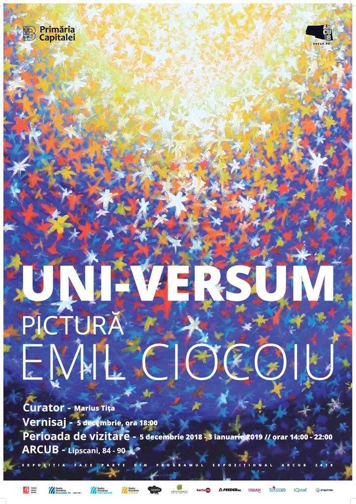 Primăria Capitalei prin ARCUB continuă seria de evenimente din cadrul Programului Expozițional 2018 cu ”UNI-VERSUM”, expoziția de pictură semnată de artistul Emil Ciocoiu și curatoriată de Marius Tița. Vernisajul expoziției va avea loc în data de 5 decembrie 2018, la ora 18:00, la ARCUB (str.Lipscani nr.84-90) și va putea fi vizitată până la data de 3 ianuarie 2019, zilnic, în intervalul orar 14:00-22:00. Accesul vizitatorilor este gratuit.