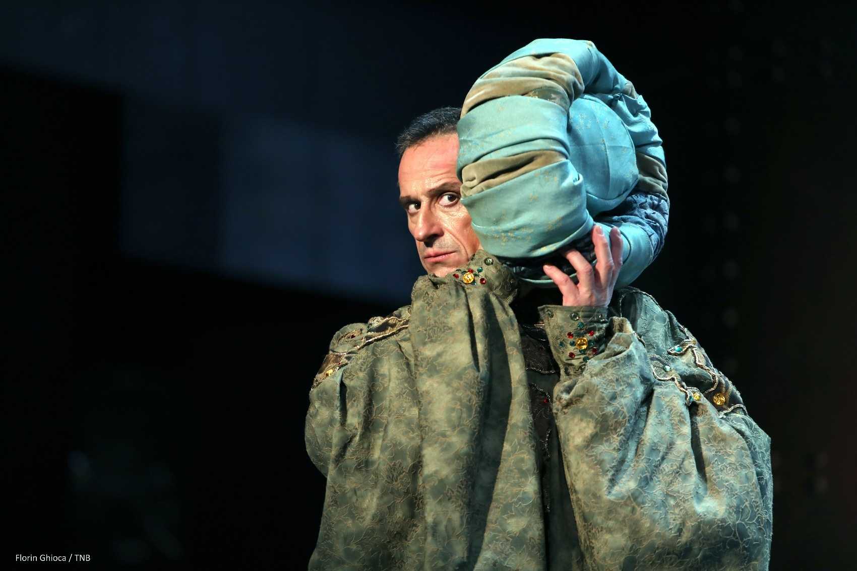 La Sala Studio, în scenografia barocă a lui Dragoş Buhagiar, Nae Caranfil aduce în scenă o lume pendulând într-un joc permanent şi periculos, între adevăr şi minciună.