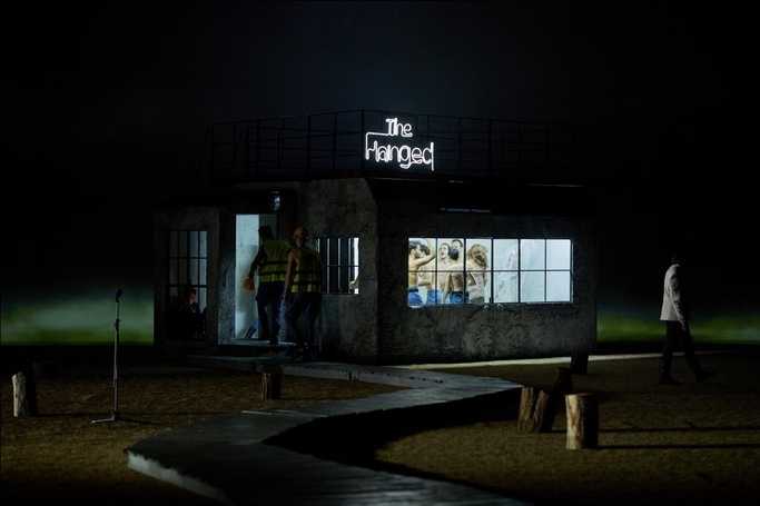 Generalul Karg, interpretat de Istvan Teglas, este prezentat de regizorul Radu Afrim ca un om fără cap, trăgând după el un candelabru mare cu becuri aprinse.