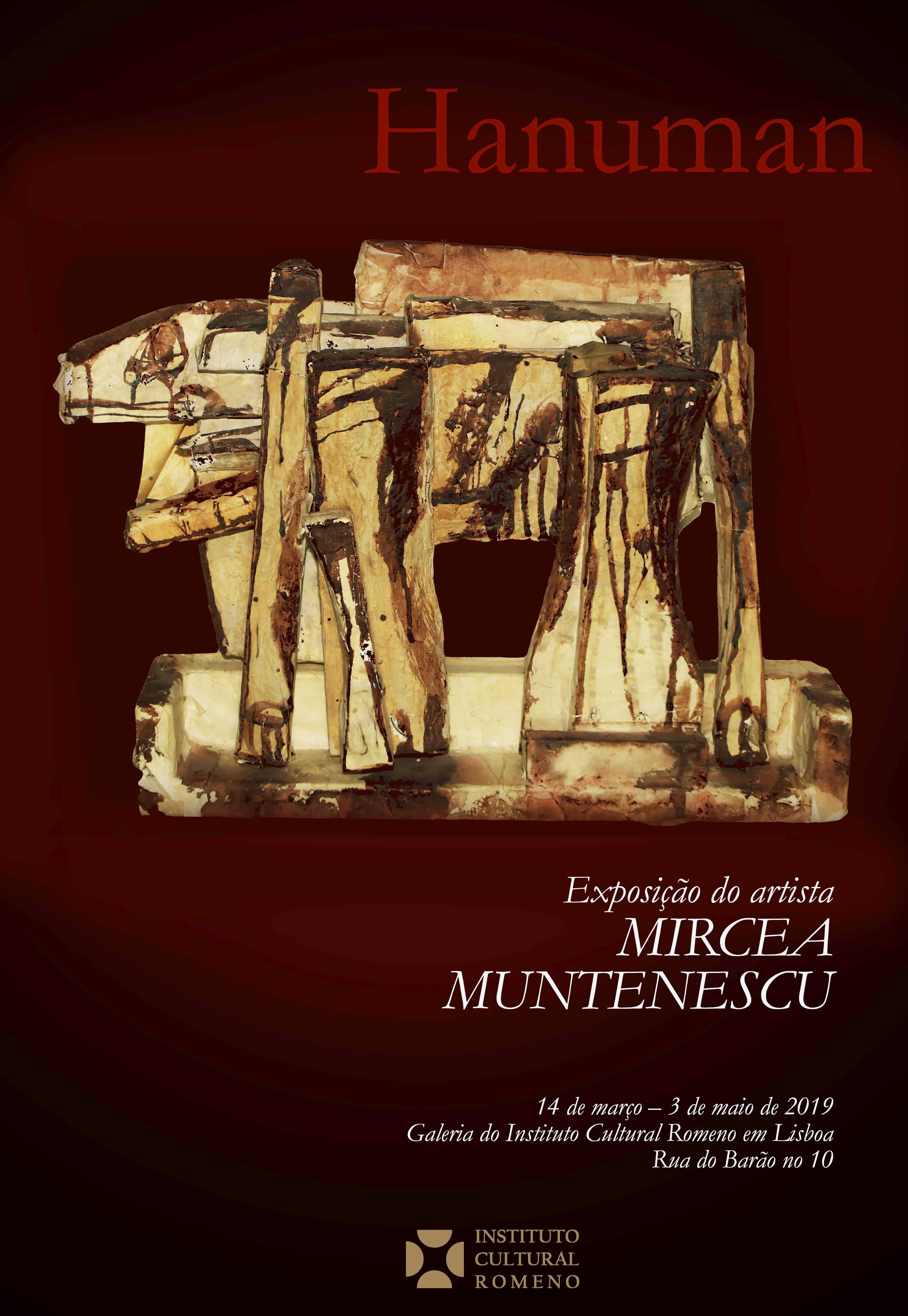 Galeria Institutului Cultural Român de la Lisabona (Rua de Barão 10, Alfama) va găzdui, în perioada 14 martie – 3 mai 2019, expoziţia Hanuman a artistului Mircea Muntenescu. Vernisajul va avea loc în data de 14 martie, ora 19.00, în prezența artistului și a domnului Fernando Couto e Santos, eseist și cronicar literar.
