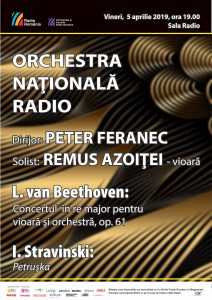 Violonistul de talie internațională REMUS AZOIȚEI – un muzician al superlativelor – este invitat pe scena Sălii Radio, în concertul susținut vineri, 5 aprilie 2019, ora 19.00, de Orchestra Națională Radio. Remus Azoiţei cântă pe o vioară de patrimoniu universal Gagliano, creată în 1740, a înregistrat în premieră mondială integrala lucrărilor pentru vioară şi pian de Enescu (alături de pianistul Eduard Stan), pentru casa de discuri Hanssler (Germania) și în 2001 a fost numit profesor de vioară al Academiei Regale de Muzică – Londra, la acel moment fiind cel mai tânăr profesor de vioară din întreaga istorie de 200 ani a instituției. În 2005, a interpretat Dublul concert de Bach alături de violonistul Nigel Kennedy, în cadrul Festivalului Enescu, concert preluat de către 19 posturi de radio și televiziune din Europa.