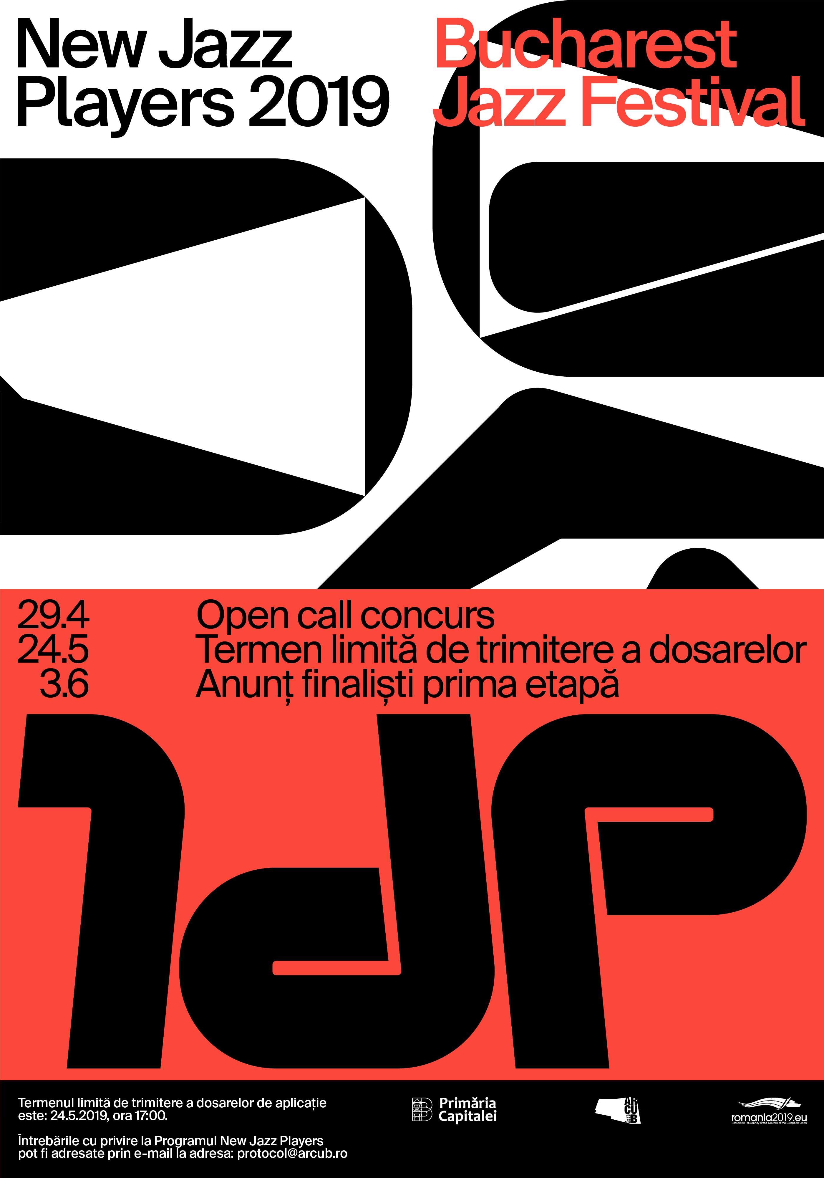 Ajuns la a opta ediție, Bucharest Jazz Festival anunță startul concursului “New Jazz Players” dedicat tinerilor artiști vocali și instrumentiști de jazz. “New Jazz Players” se desfășoară în cadrul Bucharest Jazz Festival 2019, care are loc în perioada 1-7 iulie 2019, în Piața „George Enescu” și la sediul ARCUB – Hanul Gabroveni. Evenimentul este singurul festival internațional de jazz din Capitală în aer liber și cu acces gratuit și este organizat de Primăria Capitalei, prin ARCUB. Concursul „New Jazz Players” din cadrul Bucharest Jazz Festival 2019 se adresează artiștilor vocali și instrumentiștilor de jazz români și străini rezidenți în România, cu vârsta maximă de 30 de ani, împliniți până la data începerii concursului.