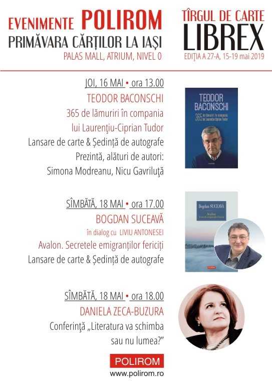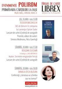 În perioada 15-19 mai 2019, Editura Polirom participă la cea de-a 27-a ediţie a Tîrgului de Carte Librex, cu peste 700 de titluri, toate aflate la reducere (25%).