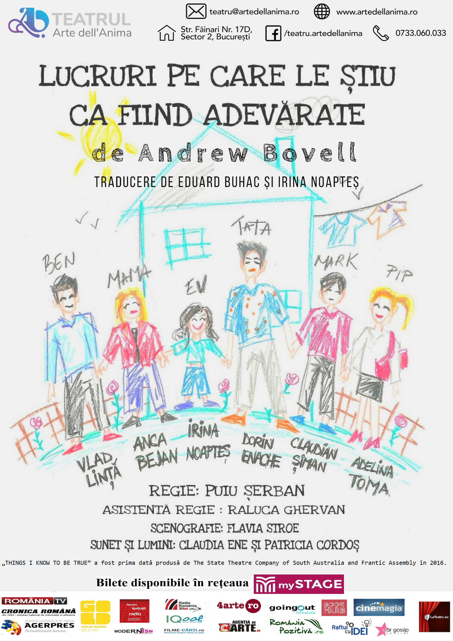 Teatrul Arte dell’Anima vă invită în data de 14 iunie, orele 19:00 la spectacolul „Lucruri pe care le știu adevărate”, de Andrew Bovell, regia Puiu Șerban!