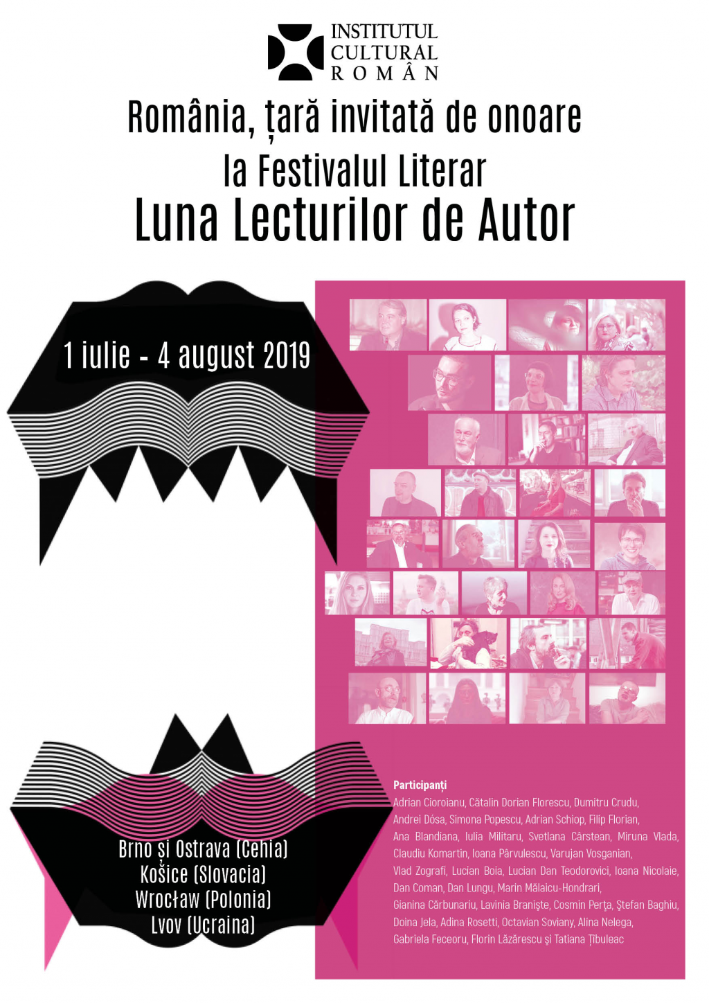 Literatura română a fost vedeta Festivalului Literar „Luna Lecturilor de Autor“, desfășurat în perioada 1 iulie – 4 august 2019 la Brno și Ostrava (Cehia), Košice (Slovacia), Wrocław (Polonia) și Lvov (Ucraina). Prin reprezentanțele sale de la Praga și de la Varșovia, Institutul Cultural Român a sprijinit participarea scriitorilor Adrian Cioroianu, Cătalin Dorian Florescu, Dumitru Crudu, Andrei Dósa, Simona Popescu, Adrian Schiop, Filip Florian, Ana Blandiana, Iulia Militaru, Svetlana Cârstean, Miruna Vlada, Claudiu Komartin, Ioana Pârvulescu, Varujan Vosganian, Vlad Zografi, Lucian Boia, Ioana Nicolaie, Dan Coman, Marin Mălaicu-Hondrari, Gianina Cărbunariu, Lavinia Branişte, Cosmin Perţa, Ştefan Baghiu, Doina Jela, Adina Rosetti, Octavian Soviany, Alina Nelega, Gabriela Feceoru, Florin Lăzărescu şi Tatiana Țîbuleac la importanta manifestare literară, considerată cel mai mare eveniment de acest gen din Europa Centrală.