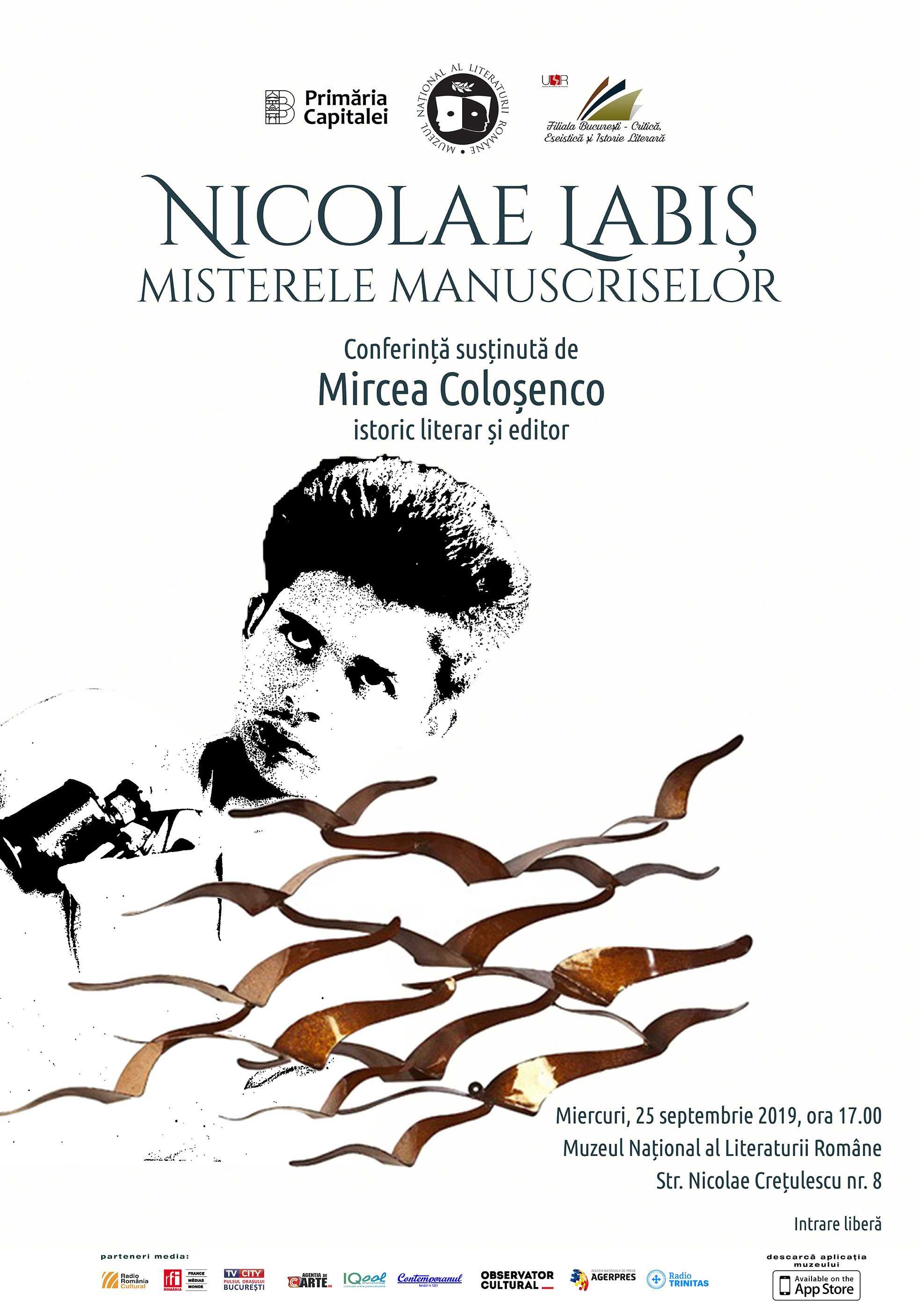 Miercuri, 25 septembrie 2019, de la ora 17.00, la sediul MNLR din Str. Nicolae Crețulescu 8, Muzeul Național al Literaturii Române și Filiala de Critică, Eseistică și Istorie literară a USR vă invită la conferința ”Nicolae Labiş – misterele manuscriselor”, susținută de Mircea Coloşenco, istoric literar și editor.