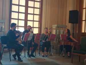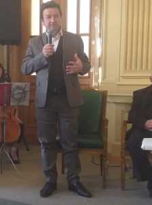 Maestrul George Mihăiță: ” Încep printr-o mare reverență în fața doamnei Mireille Rădoi și o mare reverență în fața tuturor celor prezenți astăzi aici. Vă salut prietenește cum știu eu mai bine, cu o poezie de Nichita Stănescu.”