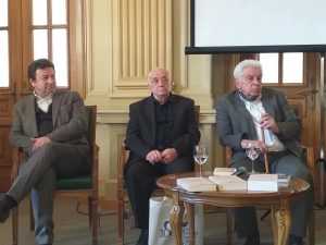 Prof.univ.dr. Silviu Angelescu: ”O să încep cu o amintire. În sala aceasta, în urmă cu 55 și ceva de ani, mi-am petrecut mult timp. Era sala de lectură, lipseau cele două tablouri de pe pereți, totul era mult mai modest. În decembrie 89 am ajuns aici și am plâns pentru că această bibliotecă a fost incendiată. Bibliotecile au avut cea mai nefericită soartă dintre instituțiile omenești, începând cu marea bibliotecă din Cartagena și marea bibliotecă din Alexandria. Vreau să atrag atenția asupra faptului că biblioteca a făcut obiectul urii omenești. Sunt două roluri care au exercitat această ură: conducătorul de stat și conducătorul religios. Aceștia au fost cei care au pus pe foc biblioteci fabuloase. Marea bibliotecă din Alexandria era cea mai mare sursă de documentare a vremii, cu 700 de mii de papirusuri. Trebuie să adaug că, în clipa de față, biblioteca și cartea au un concurent, cartea nu mai e căutată, deși ecranul telefonului nu o să modeleze o persoană așa cum o face cartea. Această colecție pusă la cale în urmă cu 20 de ani de academicianul Eugen Simion este rodul unei idei care îi apăruse cu mult timp înainte, într-o discuție cu Marin Preda. Există și prieteni ai cărții, oamenii de litere. Amintesc celebra colecție Pleiade începută în urmă cu 90 de ani, modelul colecției inițiate de profesorul Eugen Simion. Acești autori de colecții sunt în primul rând prietenii cărții. Dacă astăzi vorbim așa cum vorbim o facem datorită scriitorilor. De aceea prietenii cărții fac din carte un element care să ajungă în mâinile fiecăruia. Rostul cărții e de a modela o minte, dar și un suflet. Un autor pe care l-am iubit foarte mult, Marin Preda, a reușit prin romanele lui să spună mai mult despre lumea căreia îi aparținea decât oricare alt autor. Aștept cu mare nerăbdare un autor care să redea cu aceeași autenticitate imaginea satului de azi. O colecție este și o istorie a spiritului. Mulțumesc.”