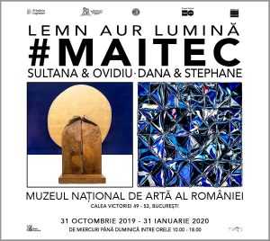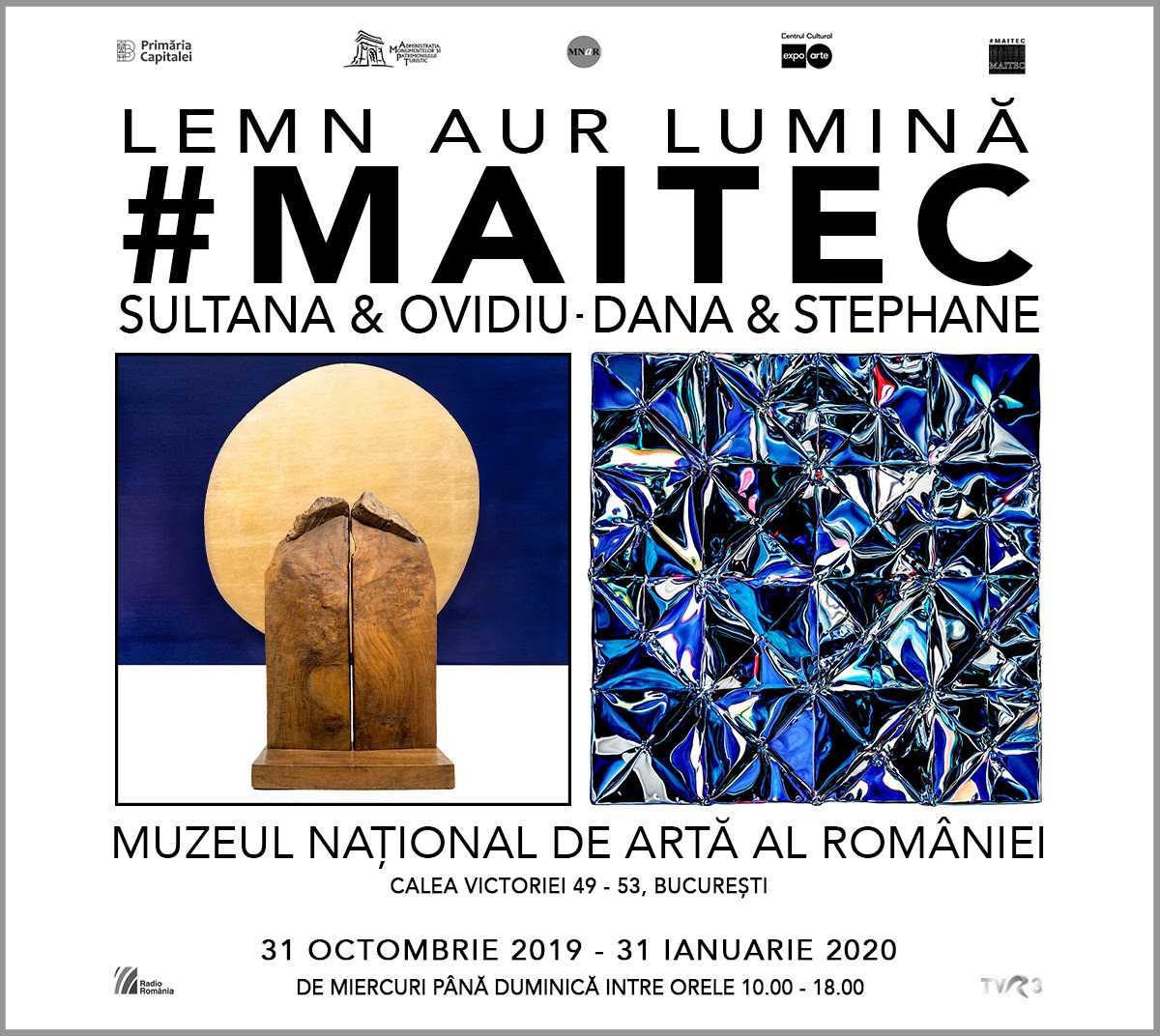În perioada 31 octombrie 2019 – 31 ianuarie 2020, Muzeul Național de Artă al României găzduiește expoziția #Maitec – Lemn Aur Lumină, cea mai amplă retrospectivă din ultimul deceniu dedicată Sultanei și lui Ovidiu Maitec, într-un dialog vizual inedit cu Dana și Stéphane Maitec. Două generații de artiști din aceeași familie, trei limbaje artistice diferite – pictură, sculptură, fotografie –, 4 destine care s-au format în proximitate, în efervescența căutării unei voci și unui drum propriu în artă: aceasta este povestea Maitec, care se suprapune și interferează cu parcursul artei românești din ultima jumătate de veac. Dacă Ovidiu și Sultana Maitec sunt, astăzi, două repere incontestabile de care se leagă evoluția și inovația în sculptura și pictura românească de după 1950, expoziția Lemn Aur Lumină propune o perspectivă contemporană asupra creației lor, în dialog cu un nou limbaj artistic: fotografia. Stéphane Maitec, fiul celor doi artiști, lucrează, din 2002, alături de Dana Maitec: un duo care și-a construit o impresionantă carieră internațională în fotografia artistică. În această expoziție, cei doi propun însă un experiment vizual spectaculos în noua lor serie de lucrări, Reflections, care aduce împreună, printr-un fascinant joc de reflexii, fotografia, sculptura și pictura, iar rezultatul este un nou gen artistic fluid și o nouă abordare asupra luminii.