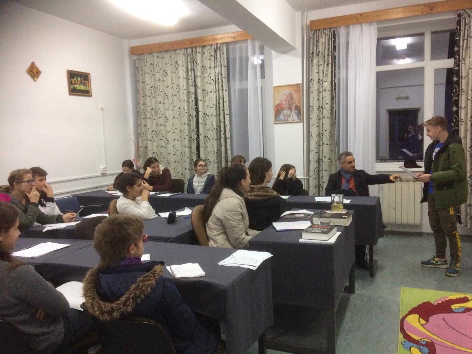 Joi, 28 noiembrie 2019, la Așezământul Casa ”Sfântul Iosif” din Odorheiu Secuiesc, au debutat atelierele de scriere creativă cu elevii așezământului, în cadrul programului ”Daruri pentru Minte, Trup și Spirit”, organizat de Clubul UNESCO-Adolescenții și sponsorizat de Loteria Română. Coordonatorul atelierelor de scriere creativă, scriitorul Dan Mircea Cipariu, președintele Clubului UNESCO-Adolescenții, a prefațat atelierele de scriere creativă cu o lectură din romanul său ”Planeta Puzzle”, lectură aplaudată la scenă deschisă de către copiii și adolescenții care au făcut neîncăpătoare sala de festivități a Așezământului Casa ”Sfântul Iosif” . După lectură, s-au desfășurat, cu 16 elevi ai Așezământului, atelierele de scriere creativă. Două dintre textele scrise la atelier de Iulia Pârlea (clasa a X-a P, Liceul ”Marin Preda”) și Andrei Florin Todoran (clasa a IX-a IEE, Liceul ”Marin Preda”) pot fi citite mai jos. ”Daruri pentru Minte, Trup și Spirit” este un program umanitar, educativ, social și comunitar prin intermediul căruia 150 de copii și adolescenți ai Așezământului Casa ”Sfântul Iosif” din Odorheiu Secuiesc primesc câteva daruri pentru Trup, prin susținerea cheltuielilor pentru realizarea, în perioada 6 noiembrie 2019 – 10 decembrie 2019, a unor controale și intervenții stomatologice a celor 150 de copii aflați sub îngrijirea Așezământului Casa Sf. Iosif al
