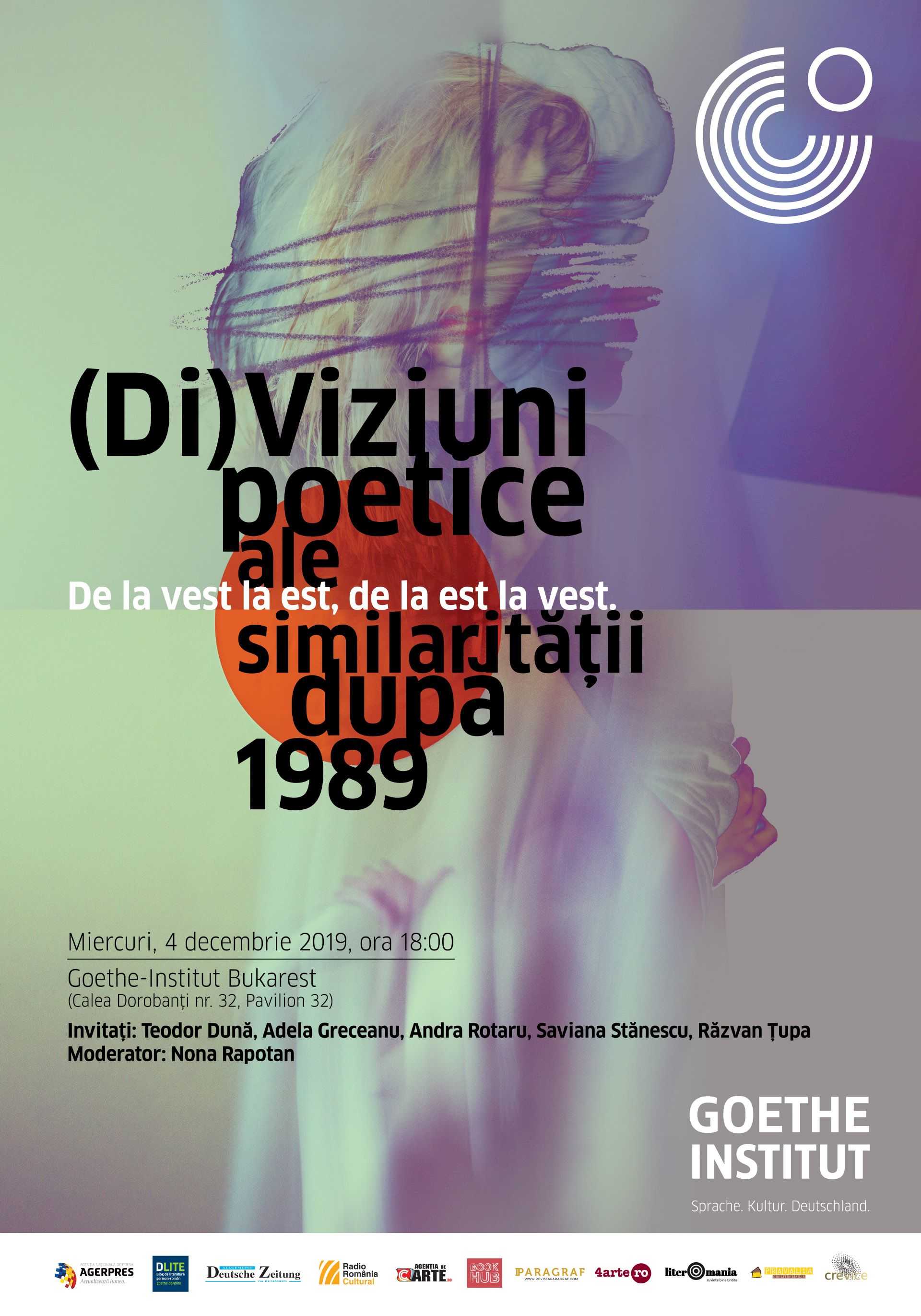 Miercuri, 4 decembrie 2019, va avea loc al treilea eveniment din seria de proiecte dedicate sfârșitului Cortinei de Fier și a împlinirii a 30 de ani de la căderea Zidului Berlinului. Evenimentul își ia ca punct de reper contextul internațional al anului 1989, zidurile subiective ale limbajului, barierele fizice și ideologice care divid și produc noi schimbări. Căderea Zidului Berlinului, sfârșitul comunismului, valuri de emigrare, granițe deschise, bariere lingvistice și ideologice… Anul 1989, cu toate consecințele și schimbările sale, poate fi luat în considerare doar într-un context international. Autorii români Adela Greceanu, Andra Rotaru, Saviana Stănescu, Teodor Duna și Răzvan Țupa ne relatează, în cadrul evenimentului, despre experiențele personale. Discuția va fi moderată de Nona Rapotan și urmată de o lectură a poeziilor selectate. AgențiadeCarte.ro este partener media al evenimentului.