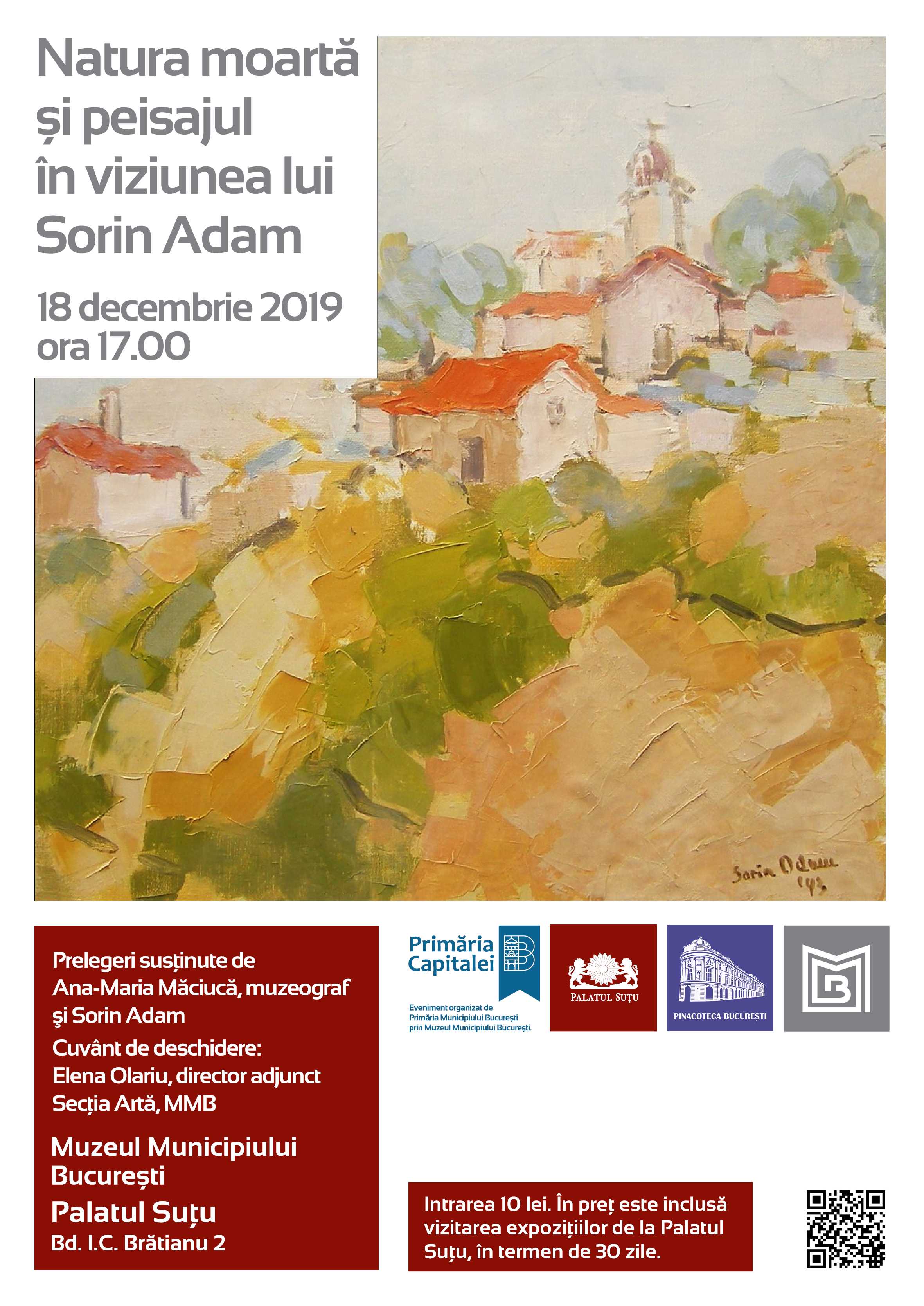 Student al maestrului Vasile Grigore și membru al Uniunii Artiștilor Plastici, Sorin Adam continuă pe linia maestrului său, adăugând un plus de forță, pasiune și emoție peisajelor și naturilor statice pe care le compune. Acesta este prezent și în Colecția Pinacotecii Municipale cu câteva lucrări donate, iar una dintre acestea figurează și în expoziția „Natură moartă, natură vie – Capodopere din Colecția Pinacotecii București”, deschisă la Palatul Suțu.