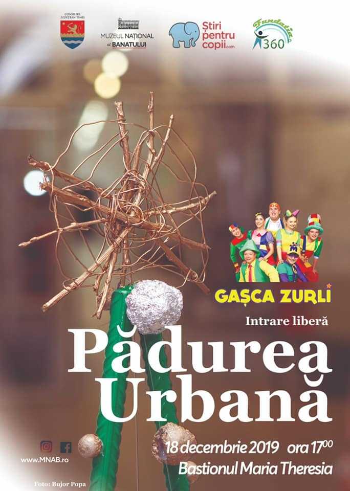 În deschiderea Pădurii Urbane, care va putea fi vizitată până în prima săptămână a anului viitor, miercuri, 18 decembrie, de la ora 17,00, organizatorii oferă un spectacol cu Gașca Zurli, la care participarea publicului este liberă.