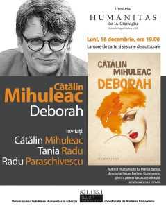 Luni, 16 decembrie 2019, la ora 19.00, în librăria Humanitas de la Cișmigiu, Editura Humanitas vă învită la lansarea romanul ”Deborah” de Cătălin Mihuleac, volum publicat în colecția 821.135.1 – Scriitori români contemporani, coordonată de Andreea Răsuceanu. Deborah este un roman alimentat de studiul evenimentelor și jurnalismului din epoca interbelică, care imaginează apoi destinele întortocheate ale personajelor în comunism și în perioada postcomunistă și care nu ignoră nimic din ce este uman și surprinzător în noi, chiar și umorul, ironia sau erotismul și chiar în cele mai dureroase și de neînțeles dintre situații. La eveniment vor vorbi: Cătălin Mihuleac, Tania Radu și Radu Paraschivescu.