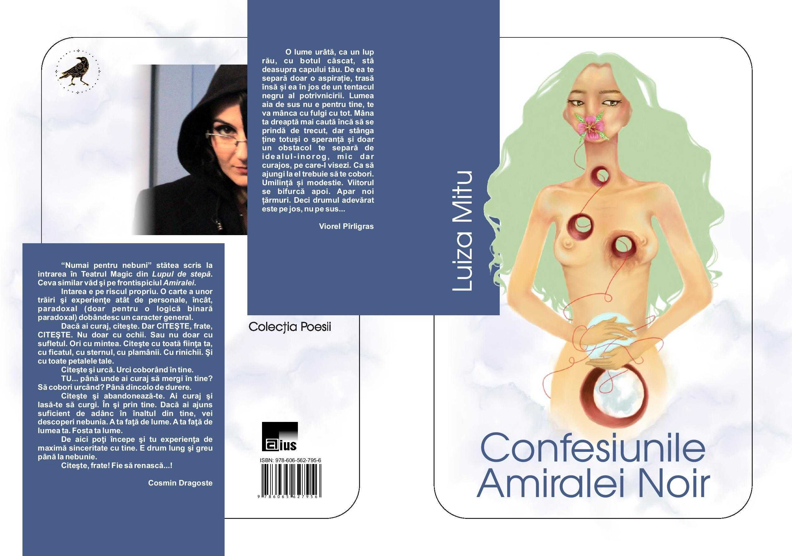 Editura Aius din Craiova anunță apariția unui volum mult așteptat: „Confesiunile Amiralei Noir” de Luiza Mitu. Volumul face parte din colecția Poesii, coordonată de Maria Dinu. Desenul copertei îi aparține Laurei Gabriela Dobrică, desen realizat la unul dintre workshop-urile din cadrul primei ediții a Festivalului Internațional Slam and Sound Poetry de la Craiova. Designul copertei este realizat de Viorel Pîrligras, desenator român, grafician, traducător și scriitor de literatură științifico-fantastică.